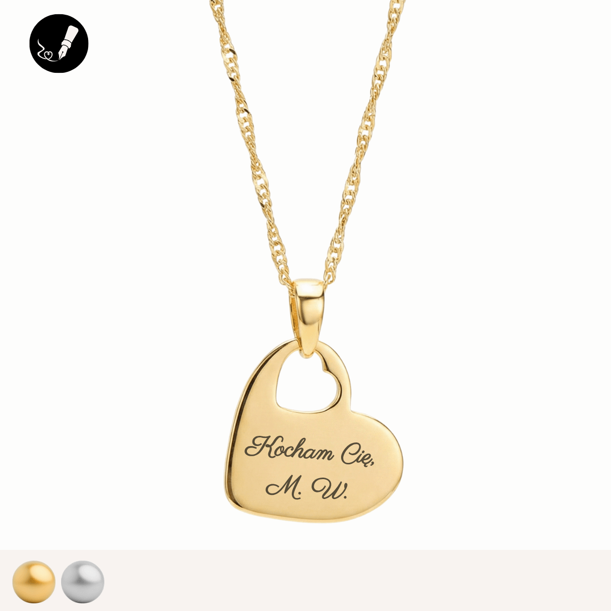 Możesz gratisowo dodać grawer z drugiej strony serca (na odwrocie zawieszki).