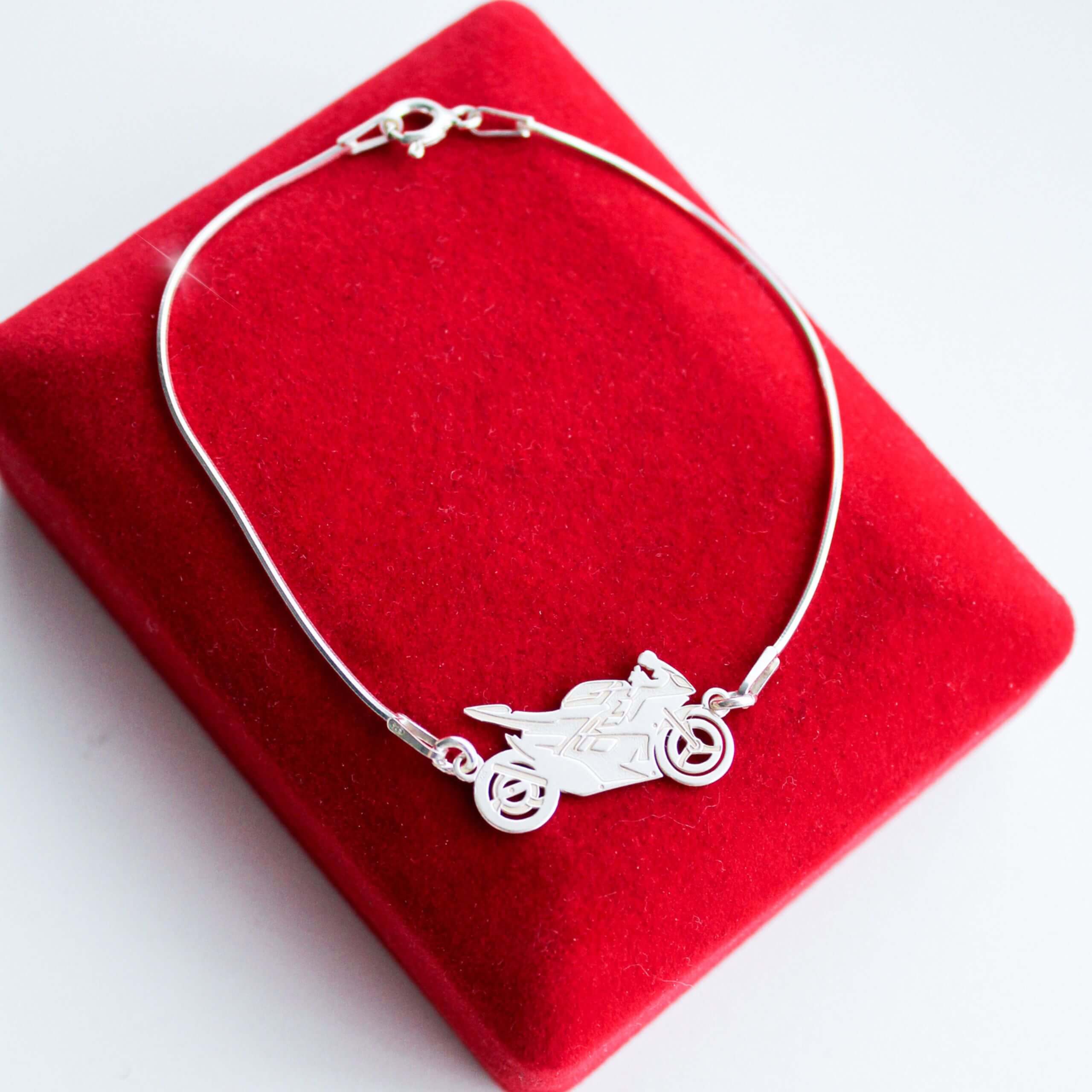 Srebrna Bransoletka z Motocyklem na Łańcuszku