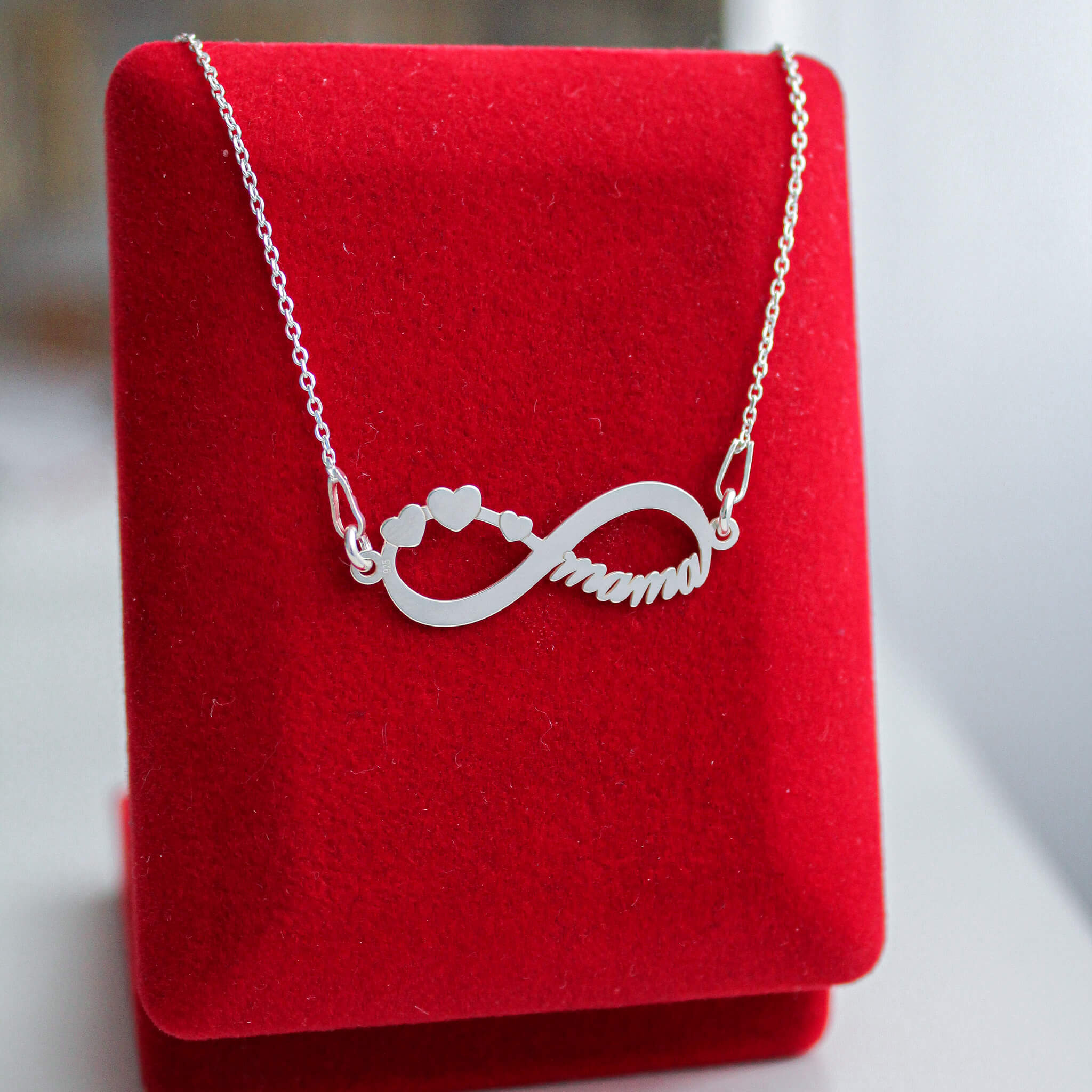 Naszyjnik MAMA z symbolem Nieskończoności to piękny podarunek dla każdej Mamy - tej, która jest nią od niedawna i tej z bagażem doświadczeń.