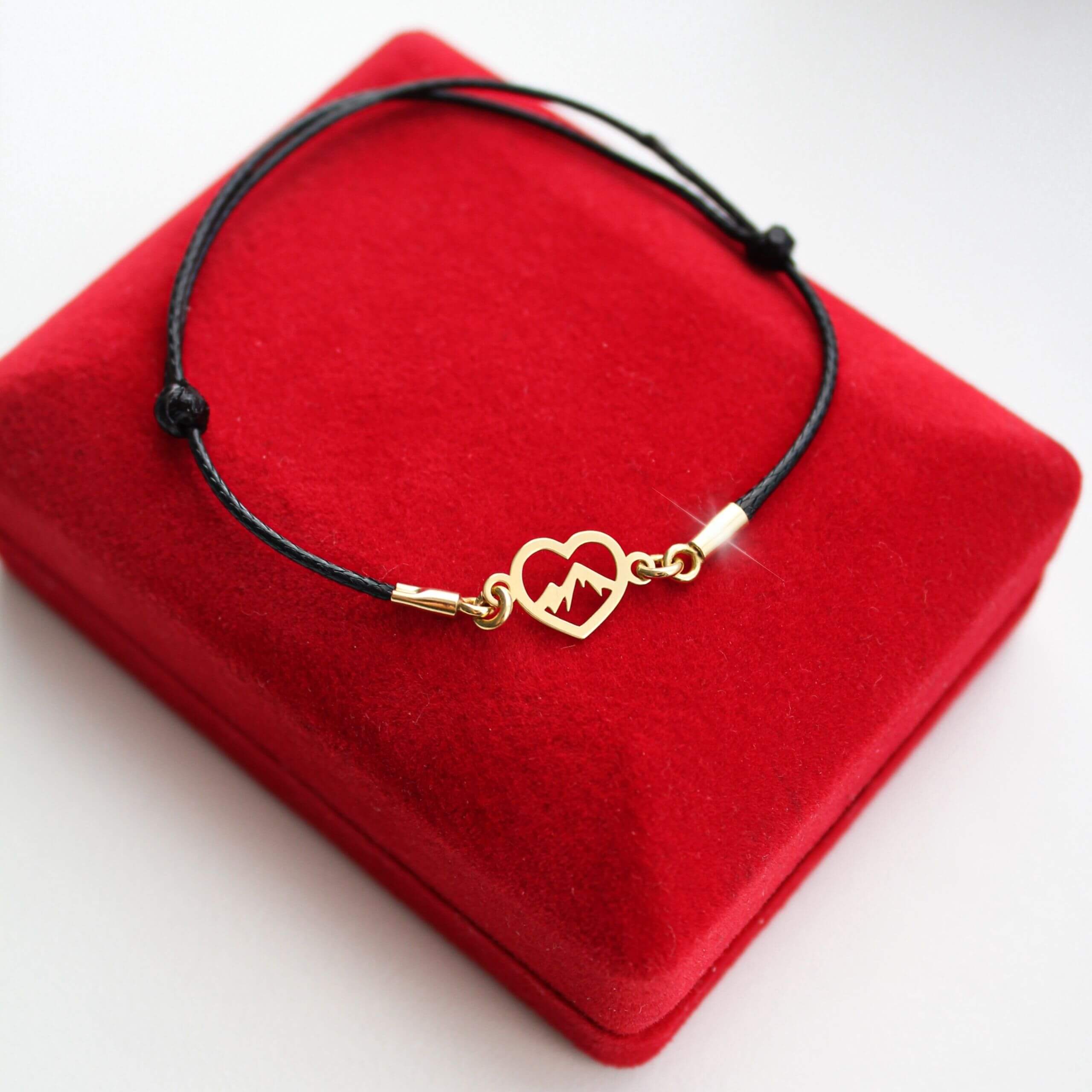 Złota Bransoletka Serce z Górami na Sznurku