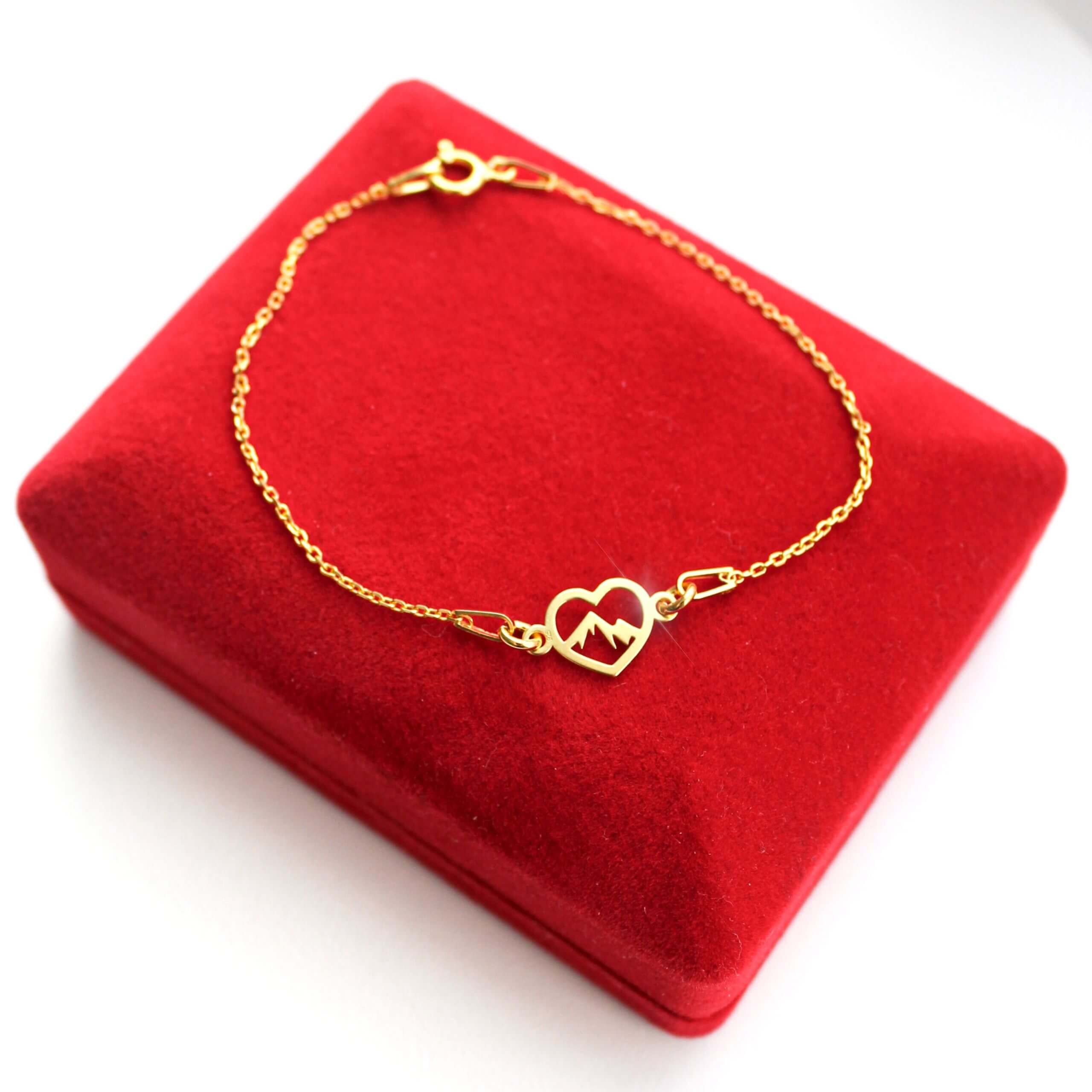 Złota Bransoletka Serce z Górami