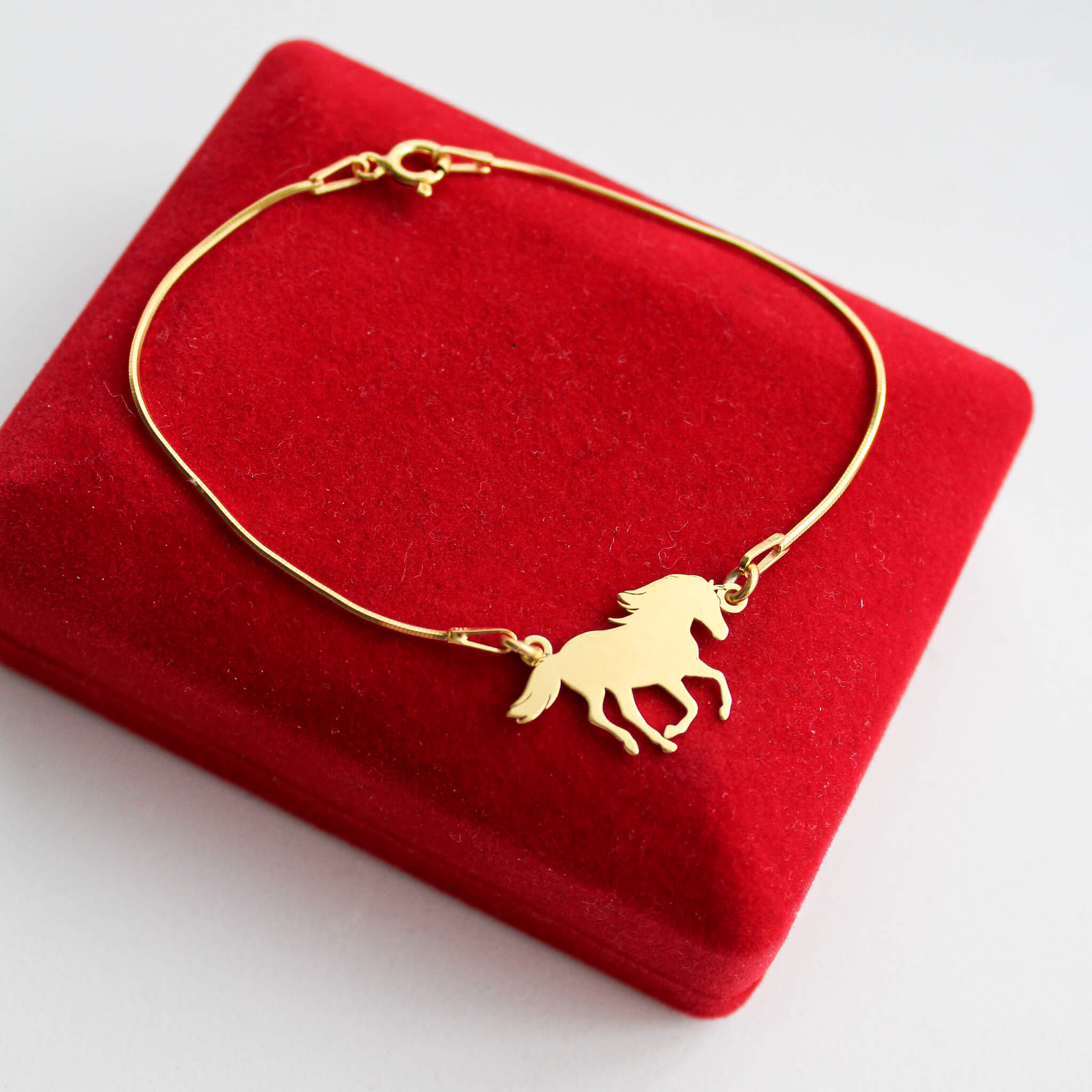 Złota Bransoletka z Koniem na Łańcuszku Grawer