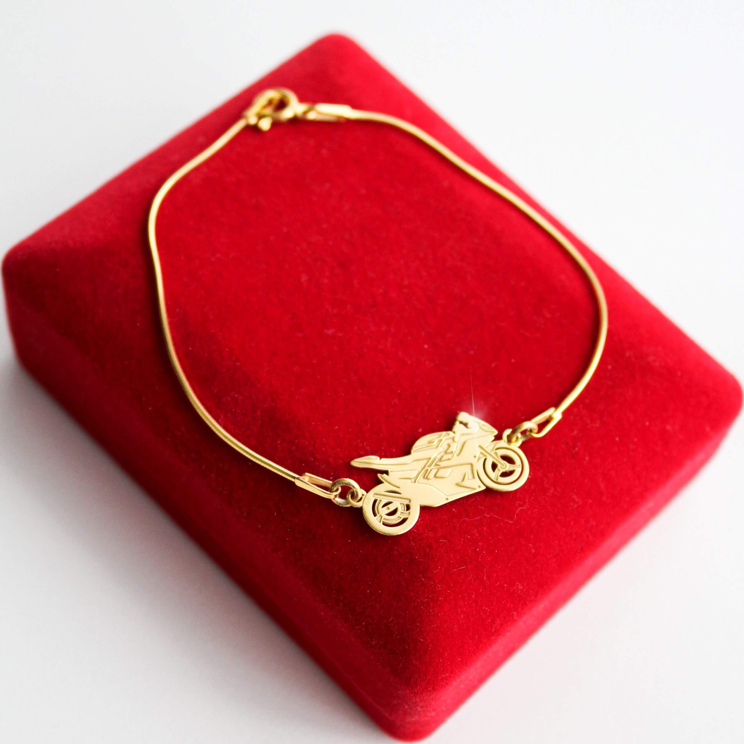 Złota Bransoletka z Motocyklem na Łańcuszku
