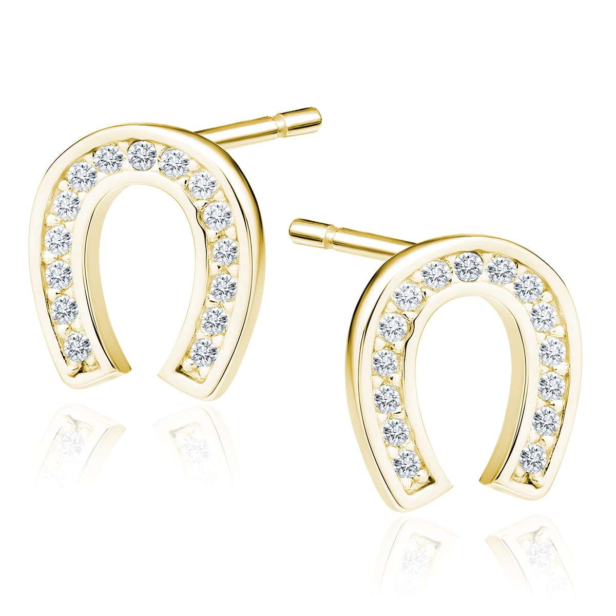 Złote Kolczyki Podkowy z Cyrkoniami z Zapięciem Sztyft pr. 925